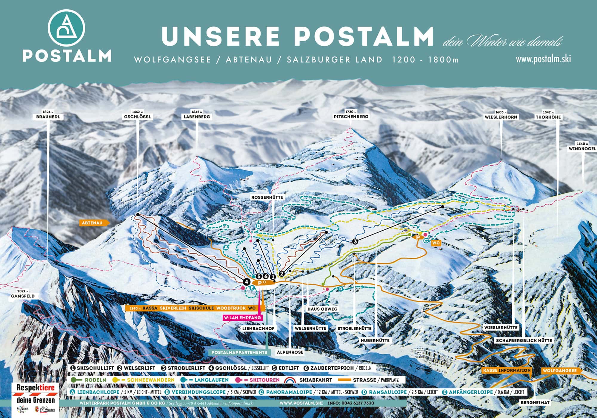 - The Postalm Winter Park is located in the Salzkammergut, between Lake Wolfgangsee and Salzburg's Lammertal.